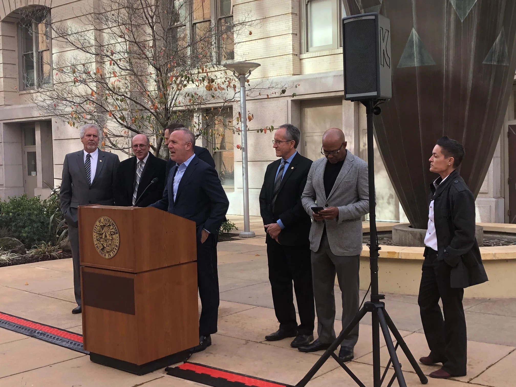 Mayor Darrell Steinberg joins fellow Council members and representatives of Sacramento Covered and Volunteers of America to announce that the Triage Shelter would remain open.