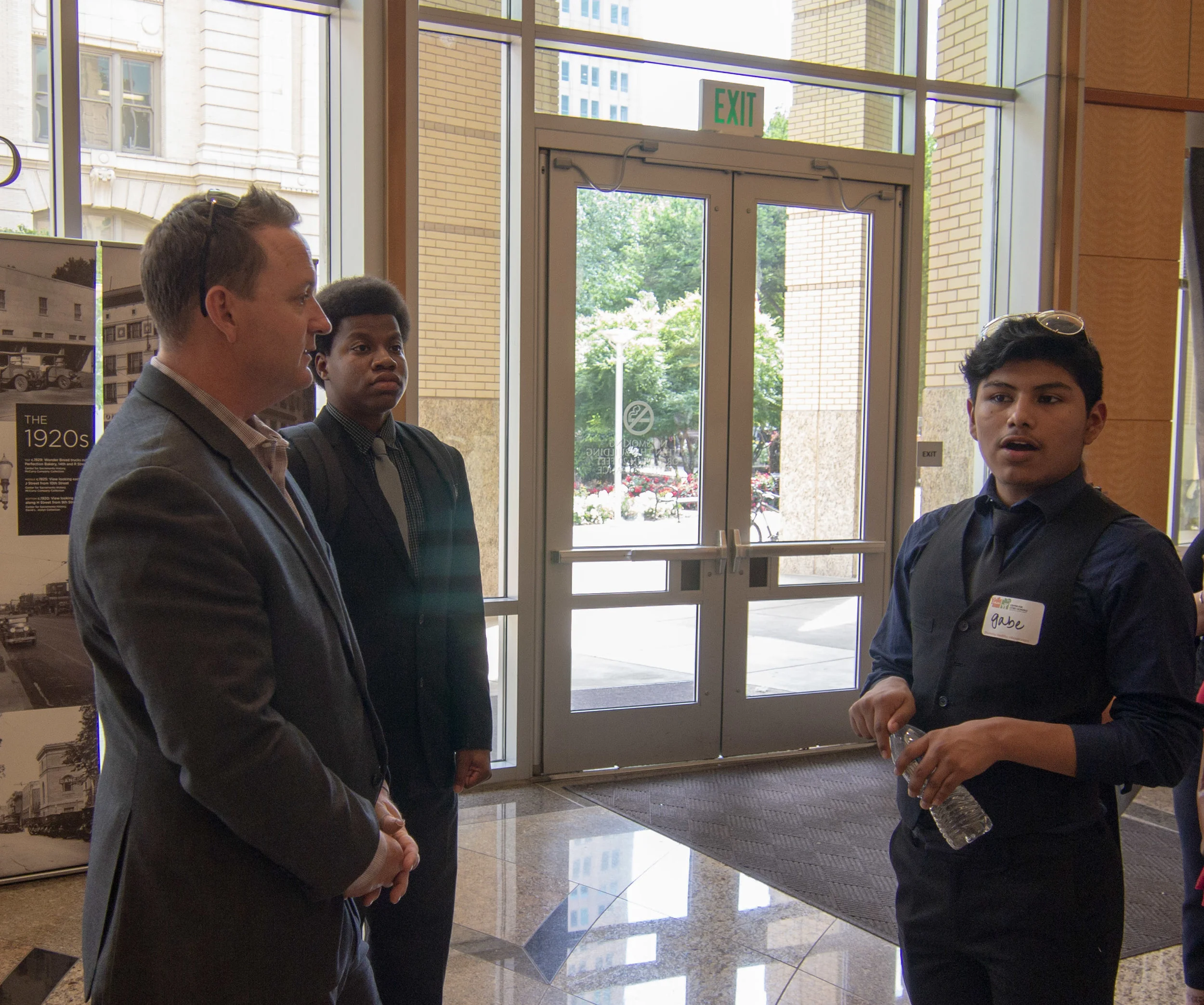 The presentations took place in the atrium of New City Hall where the students set up a showcase and discussed their projects with staff at SHRA, SCUSD, City of Sacramento and California Endowment. After the showcase, the students used council chambers to do formal presentations of their research and proposals.