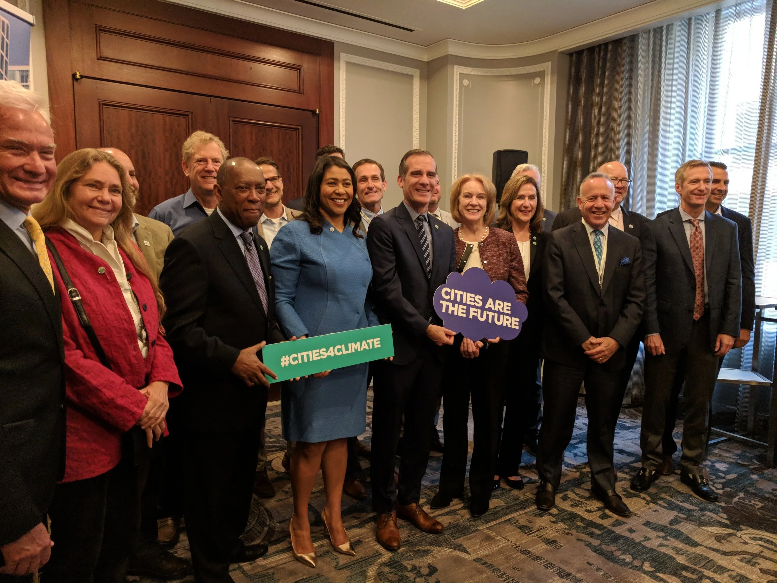 Mayor Darrell Steinberg with other mayors who have pledged to combat climate change, including Houston Mayor Sylvester Turner, San Francisco Mayor London Breed and Los Angeles Mayor Eric Garcetti.