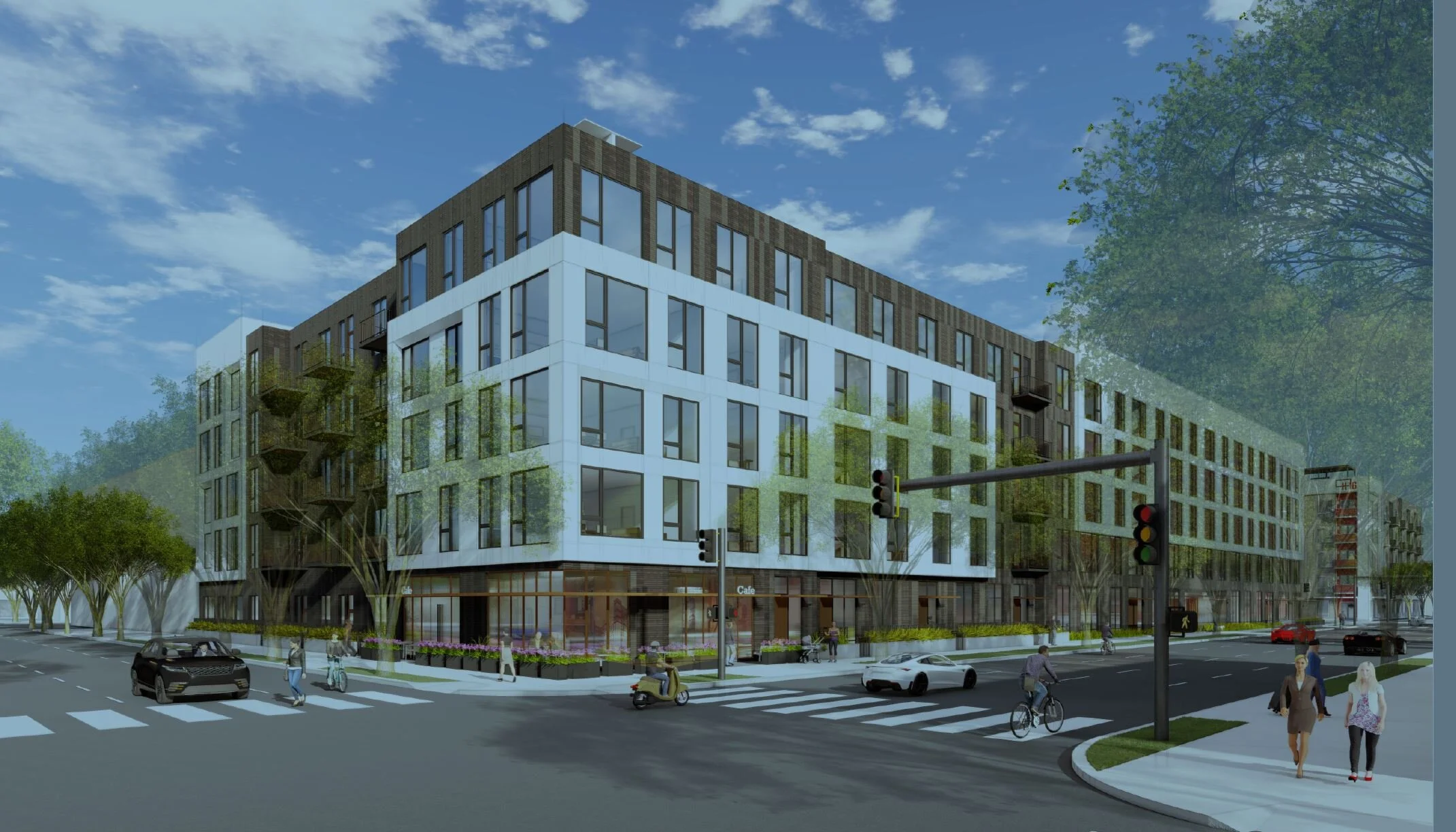 Rendering of the housing and retail project that Sotiris Kolokotronis is building on the site of the former Clarion Hotel.