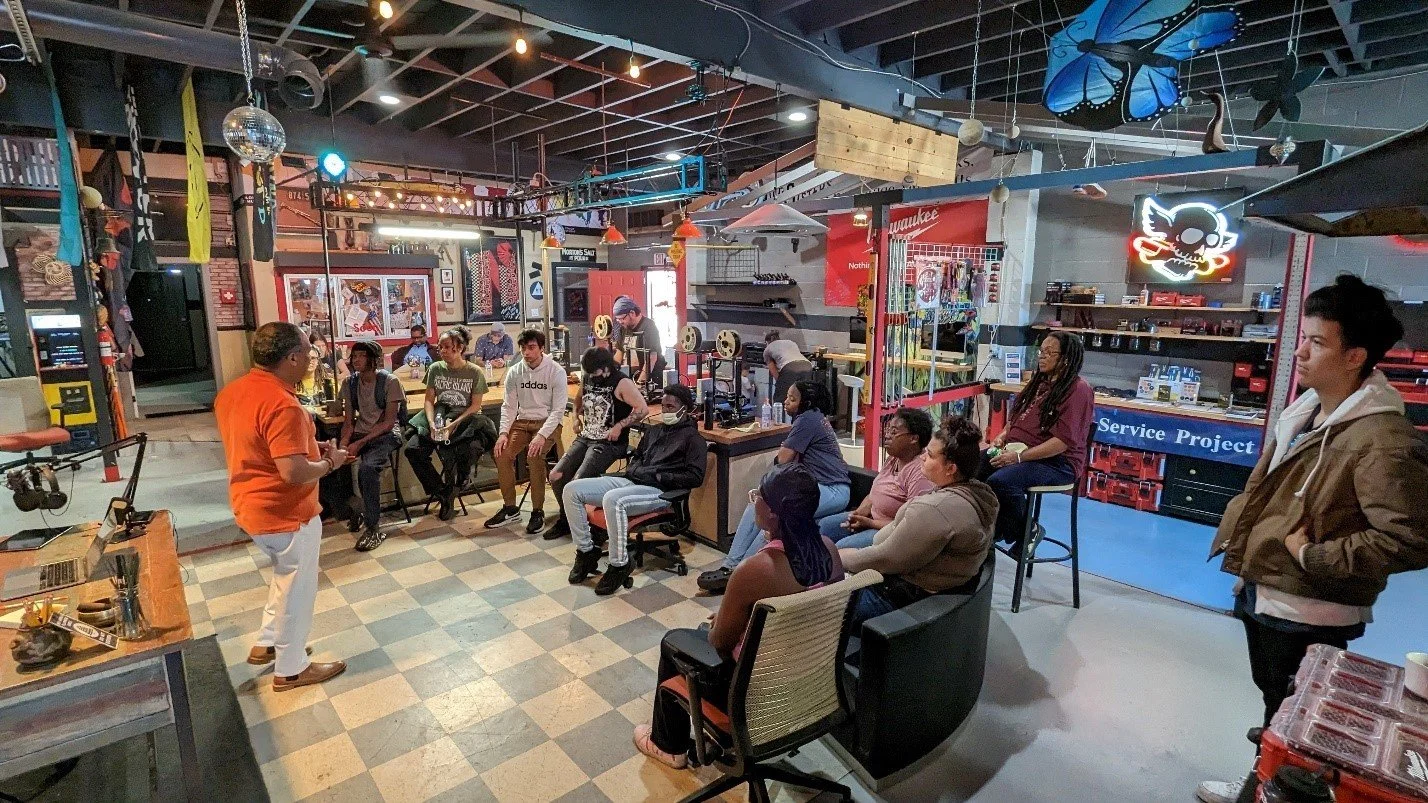 Community Shop Class is a primary partner for the Sacramento Sustainability Academy. Designed to serve as a neighborhood learning center in Oak Park at 3818 Stockton Blvd, Community Shop Class is a maker space dedicated to helping underserved and neurodivergent learners learn life-long skills in a sustainable, hands-on, and community-oriented environment. Academy fellows attend Shop Class to work on projects, get training, and celebrate graduations.